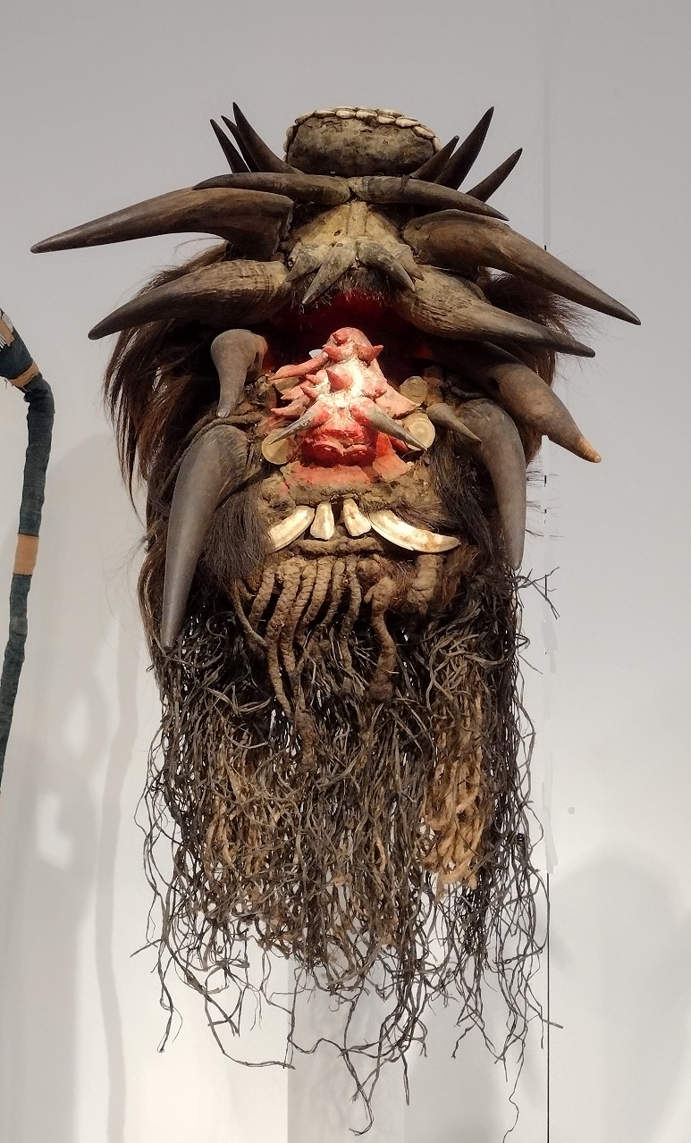 The mask, made of wood, cloth, teeth, horn, feathers, hair, shells, mud, and natural pigments, deliberately combines human and animal features. It’s believed to have the power to absorb the feral passions in a community and redirect them back into the wild — where they belong.