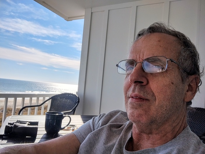 That unshaven bum is me on my back deck at Carolina Beach, armed with notebook, binoculars, and strong coffee. We’re SLOWLY transitioning to the beach, and on our last trip earlier this month, we really lucked up on the weather.